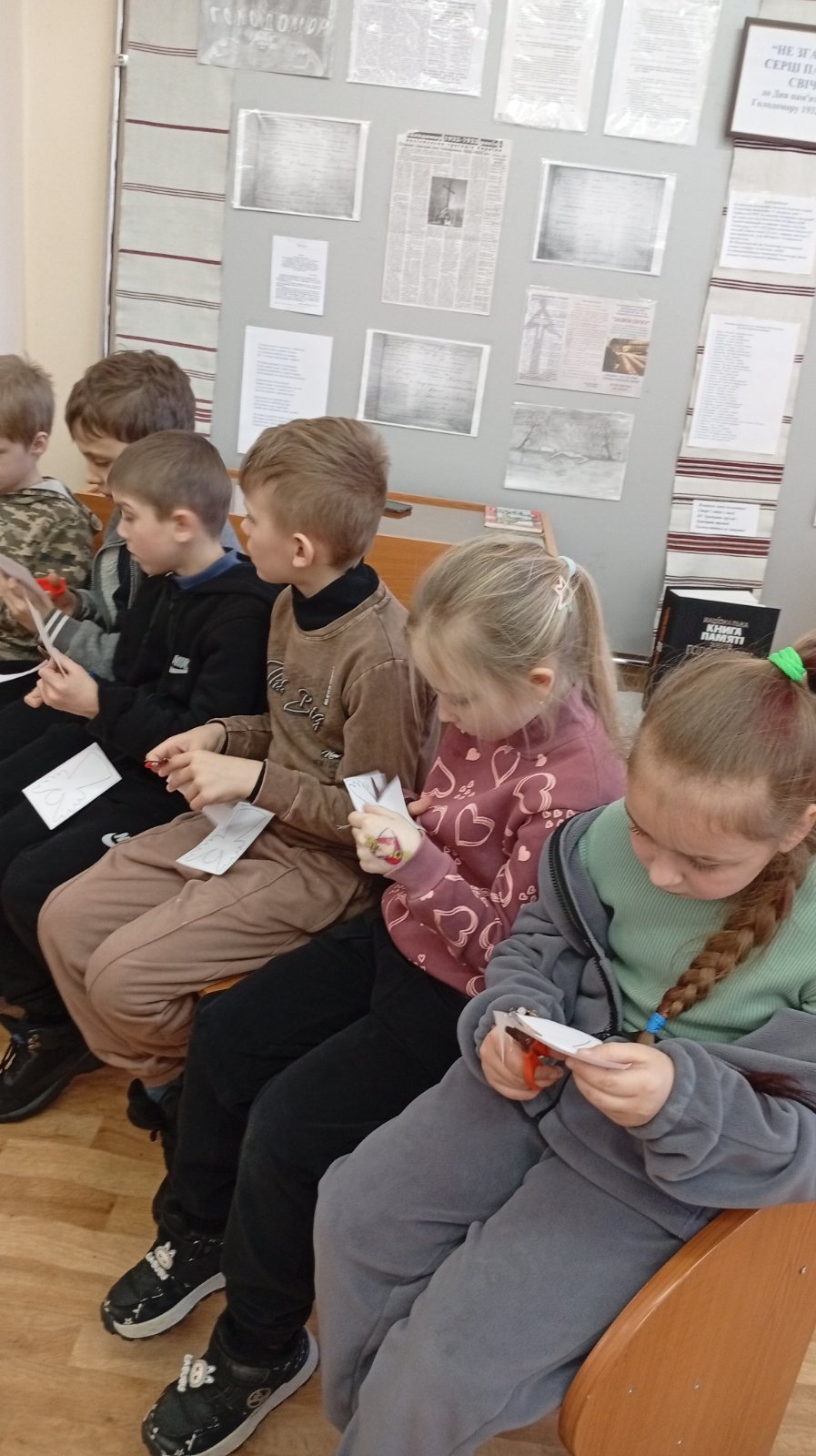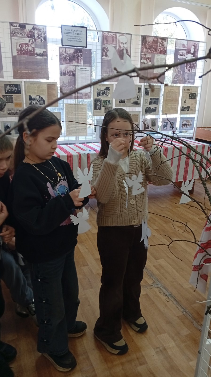З метою вшанування памʼяті Героїв Небесної Сотні учні 3-Б класу відвідали краєзнавчий музей, де для них відбувся урок памʼяті «Небесна сотня в вирій полетіла». З великим захопленням діти слухали про події, що відбувалися на Майдані Незалежності в 2013 -2014роках. В памʼять про полеглих Героїв учні виготовили паперові ангели, які розмістили на деревах.