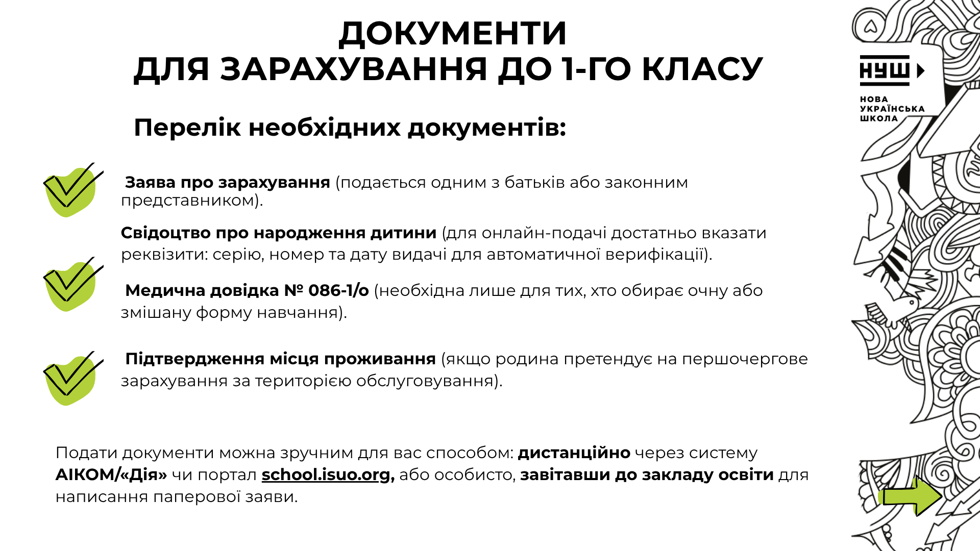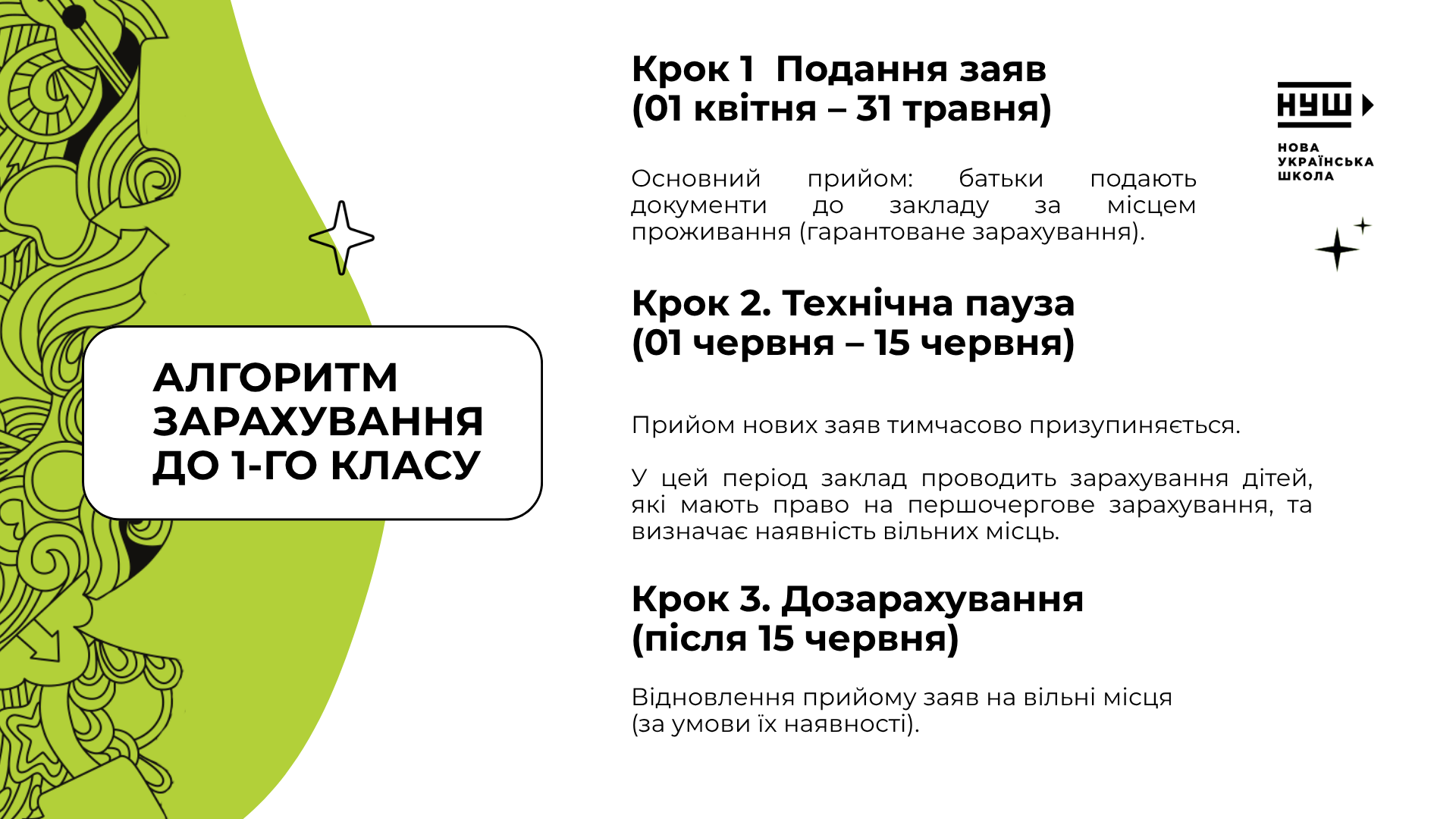 - Зарахування до 1 класу